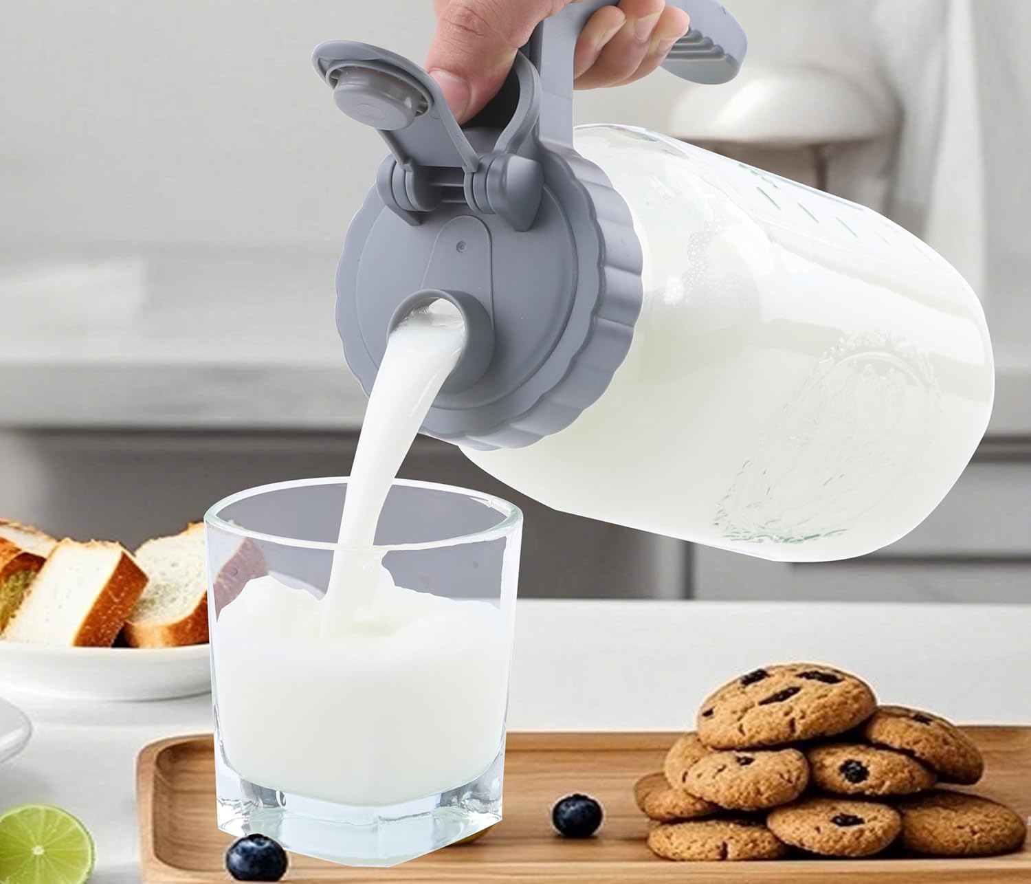 - Sealing Capabilities - Without worrying about spills or contamination. Glass Mason Jar Pitcher with silicone seal that will ensure not leak what so ever,even while shaking it upside-down. The top flip cap has a secure snap fit closure that will not leak neither. Airtight container to keep your drinks fresh!