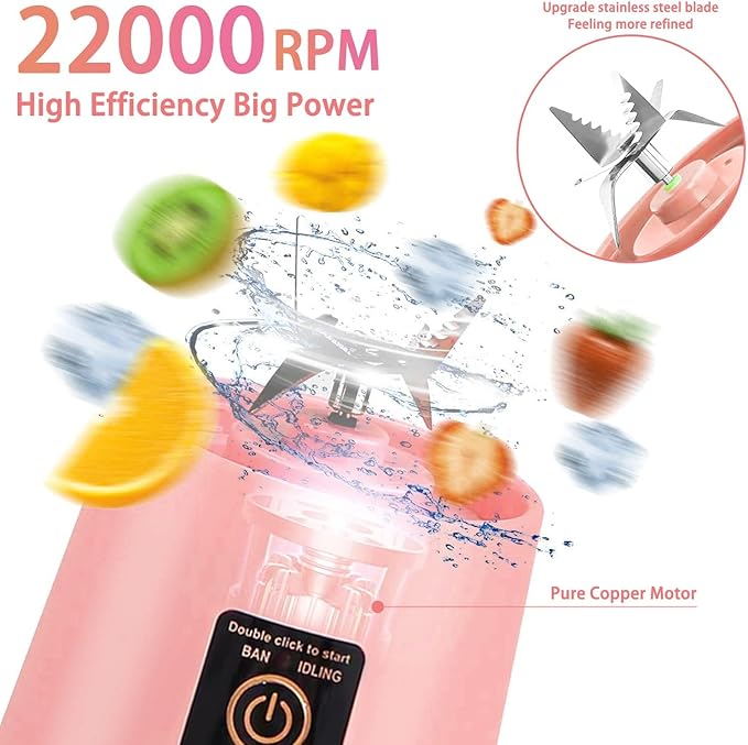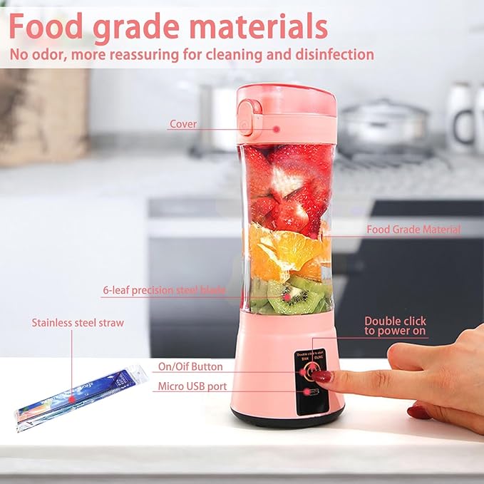 13.5oz Portable Blender for Smoothies, Shakes, and Juices - USB Rechargeable Mini Blender Cup With Protection Design for Home, Office, Outdoors - Multi-purpose Pink A4221