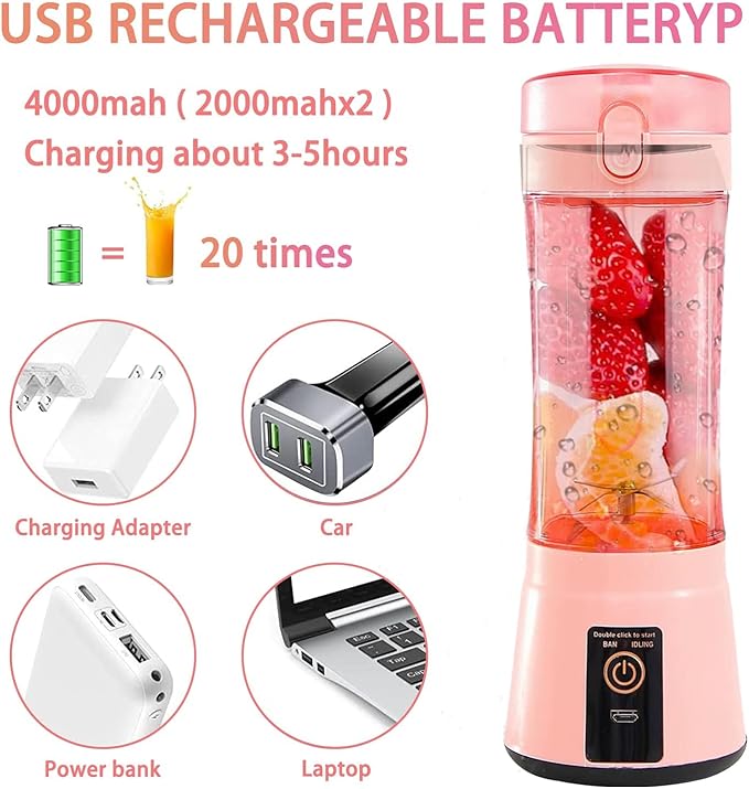 - 【Rechargeable and Portable】The portable USB rechargeable blender equipped with a doubled battery capacity makes 10-15 cups After being fully charged. When traveling, it can satisfy whole family's beverage production. Share delicious drinks with family and friends anytime, anywhere.