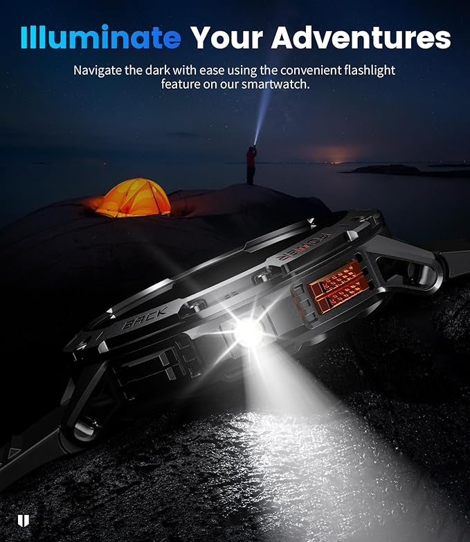 - ⌚【1.43'' Amoled HD Dispaly & Super Bright Led Night Light】DREMAC 2025 newest launch military smartwatch for men uses a low-power 1.43'' Amoled explosion-proof display with 60Hz adaptive refresh rate, 466*466 pixels, up to 1000NIT Brightness is adjustable in 5 levels, which makes it clear even in sunlight and outdoors. Also built-in a LED night light of about 150 lumens,never fear the darkness agains,when you are running at night, dark places, outdoor adventure. (One button switch)