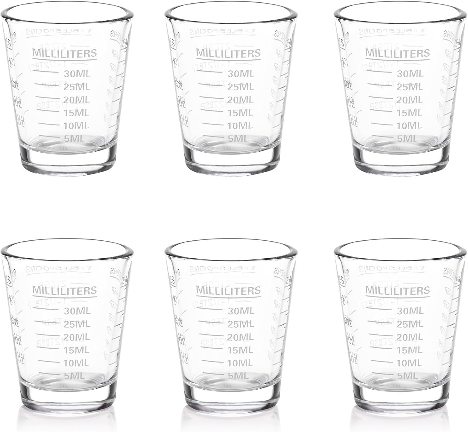 Shot Glasses Measuring Cup Set 6 Pack Espresso Shot Glasses Liquid Heavy Glass 26-Incremental Measurement 1 OZ, 2 TBS, 6 TSP, 30 ML Kitchen Tools(White)