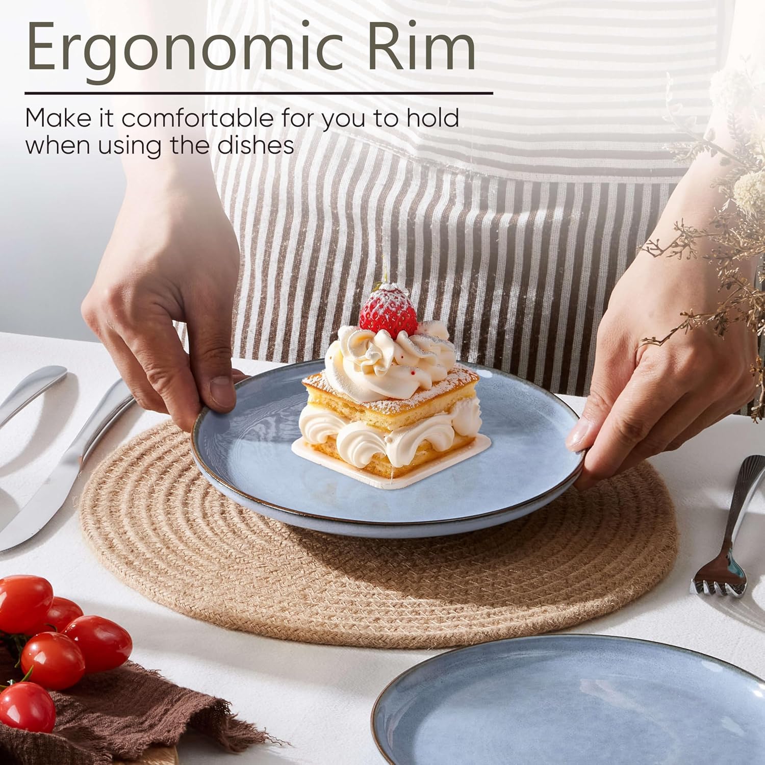 - Slide-proof Bottom, each plate has one or two round on the bottom that are not covered by the glaze, this thoughtful design prevents accidental slips and skidding, making it ideal for everyday use, and is especially suitable for multi-age family members to use with peace of mind