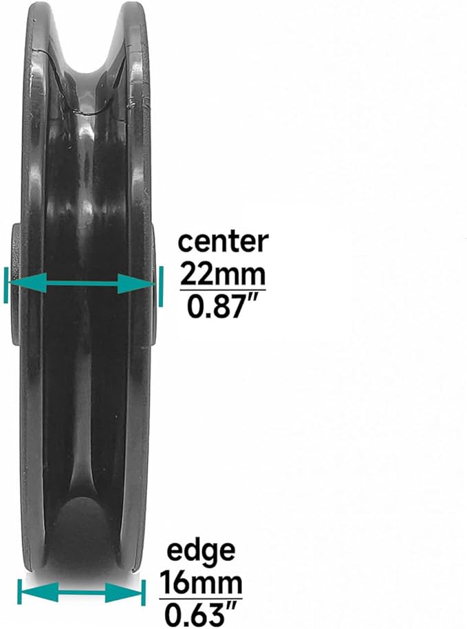 - UNIVERSAL FIT: The pulley wheel is 90mm diameter. Center hole diameter 10mm. Depth of groove 10.8mm, Width of groove10.2mm. The wheels seat up to 7mm rope or cable.
