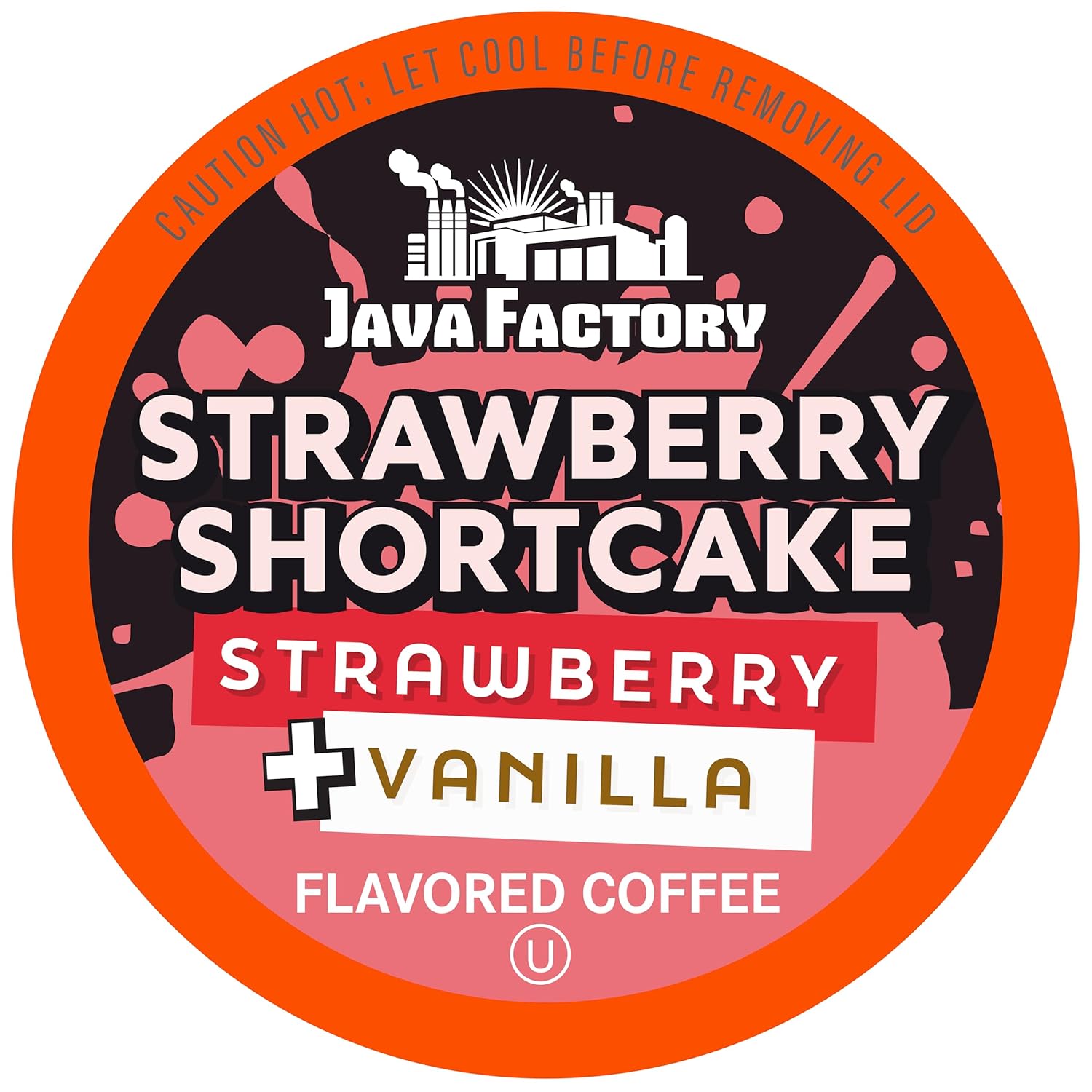 - Strawberry Shortcake flavored coffee pods by Java Factory 40 count. Sweet, dessert-inspired brew. Compatible with K-Cup brewers. Rich aand flavorful taste.