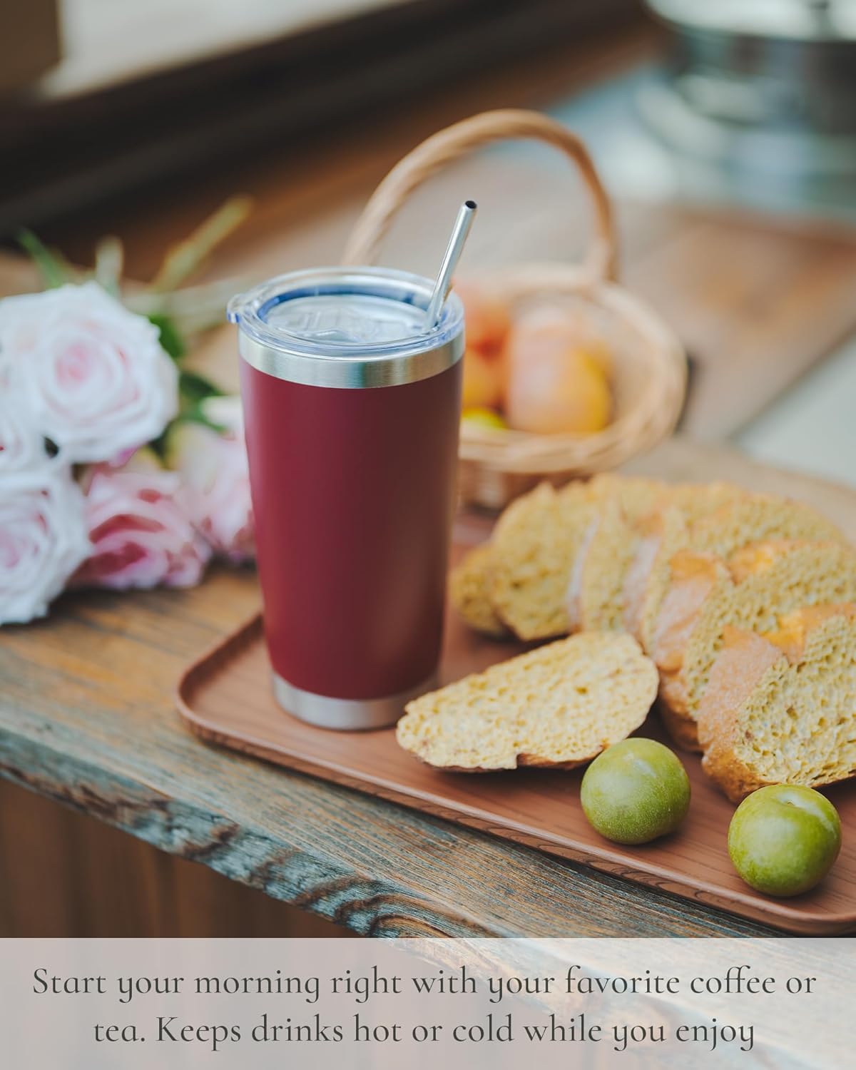 Travel Coffee Tumbler 20oz, 1 Pack Leakproof Travel Coffee Mug with Lid and Straw, Stainless Steel Double Wall Vacuum Insulated Tumbler for Hot/Iced Drinks (Textured Matte, Lilac Pink)