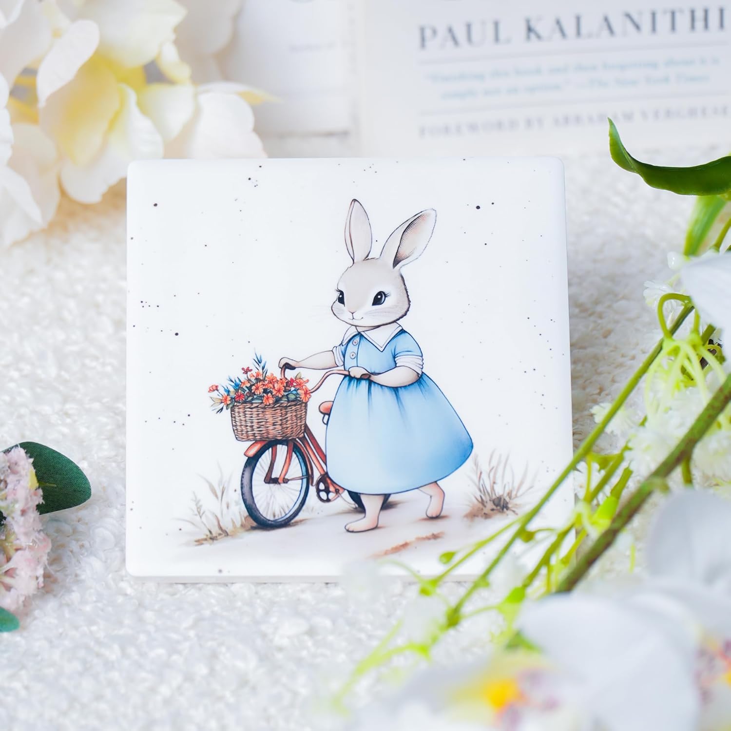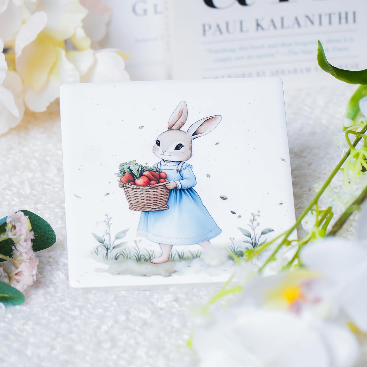 - Charming Mama Rabbit Theme: Each coaster tells a gentle story through soft, vintage-style illustrations of Mama Rabbit in everyday moments. A cozy, heartwarming design that adds a sweet touch to any space.
