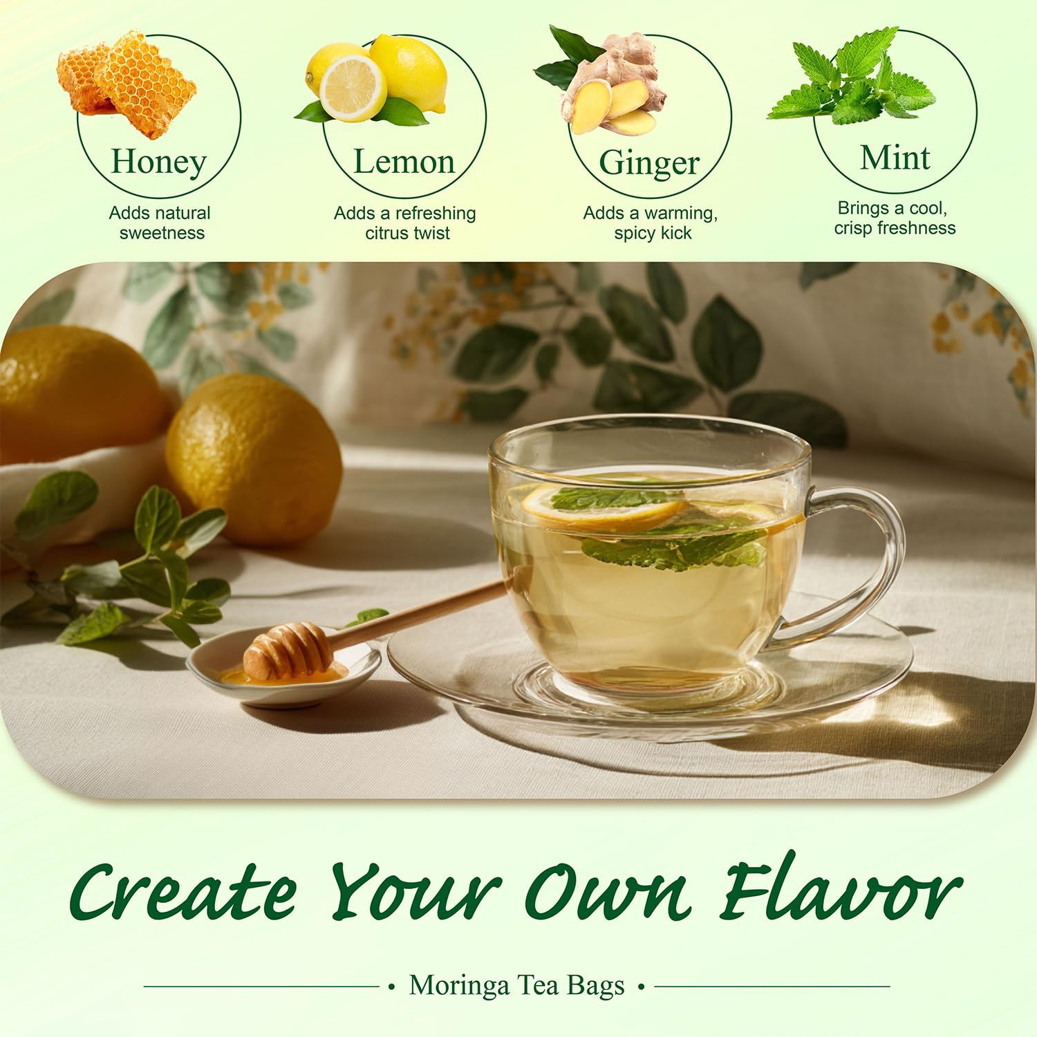 - 【100% Pure Moringa Leaves】Moringa tea bags are made from hand-selected, naturally dried moringa leaves with no additives, fillers, or caffeine. A clean, plant-based infusion for daily wellness