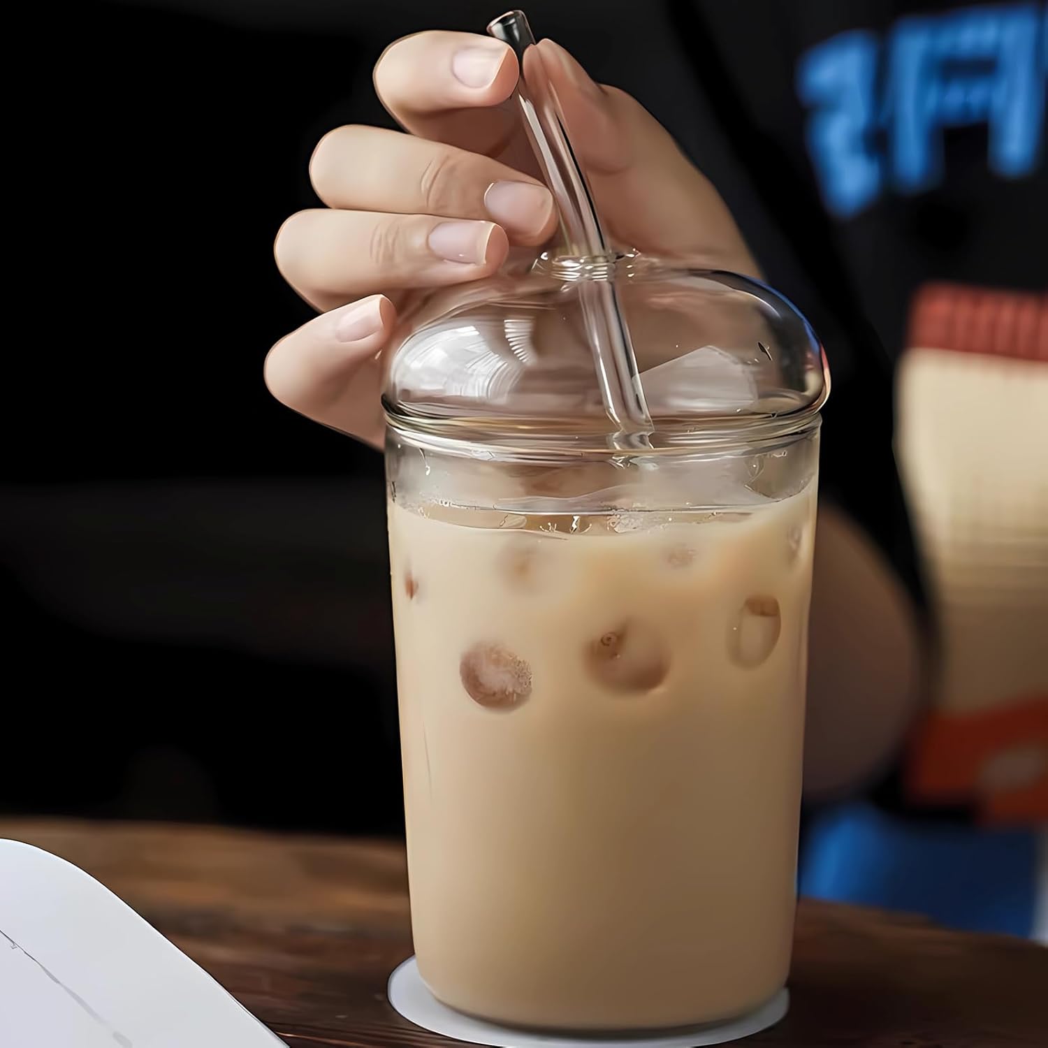 - 16oz Capacity – Perfect for iced coffee, boba tea, smoothies, soda, or water. Includes 1 glass cup (3" diameter x 4.8" height), 1 leak-proof glass lid, 1 reusable glass straw, and 1 cleaning brush.