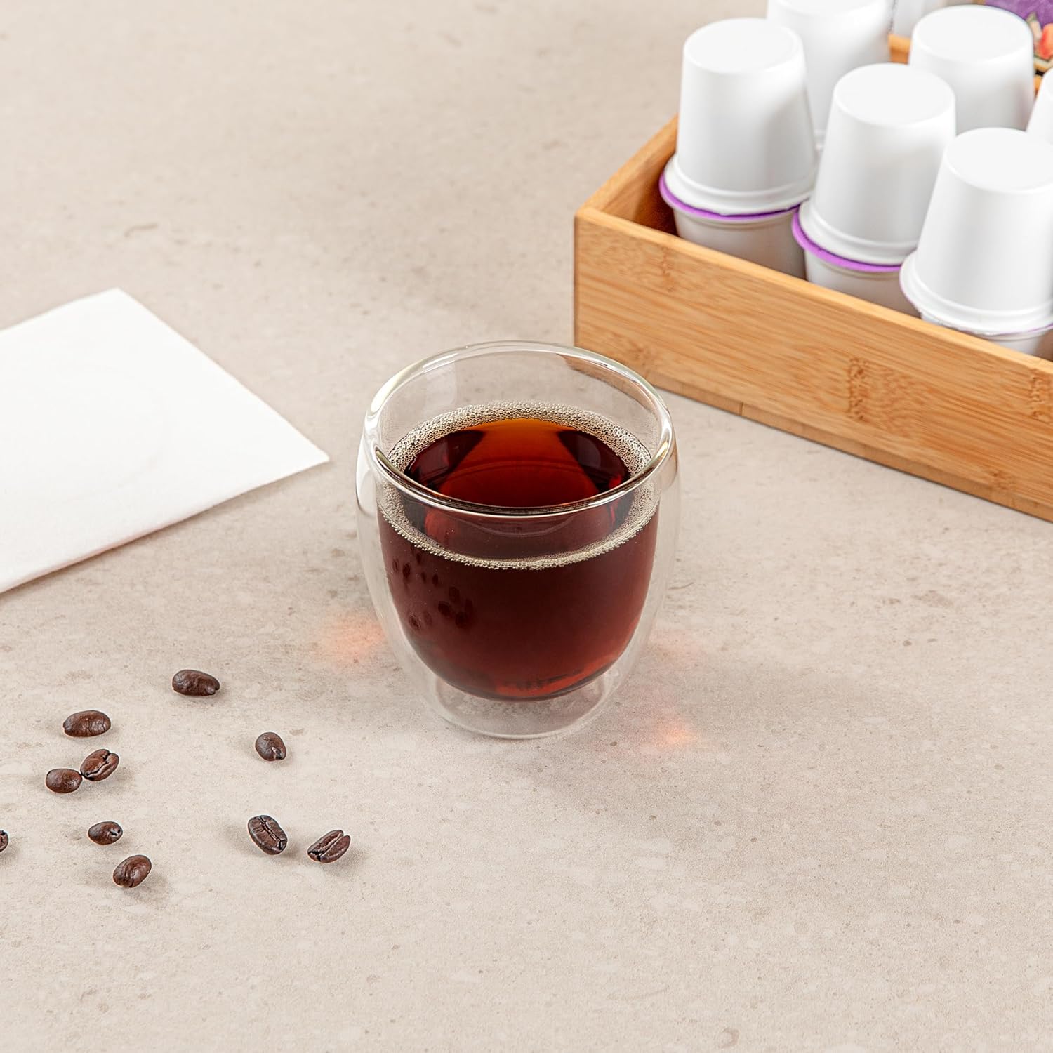 - 2 COFFEE CUPS: Each 8.5-ounce glass coffee cup measures 3.3 inches in diameter by 3.5 inches in height. You will receive 2 borosilicate coffee cups.
