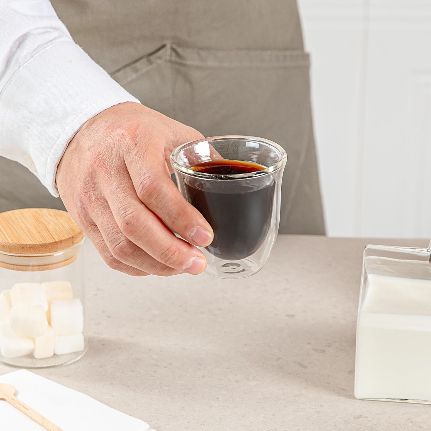 - 2 ESPRESSO CUPS: Each 2.7-ounce shot glass measures 2.6 inches in diameter by 2.5 inches in height. You will receive 2 borosilicate espresso cups.
