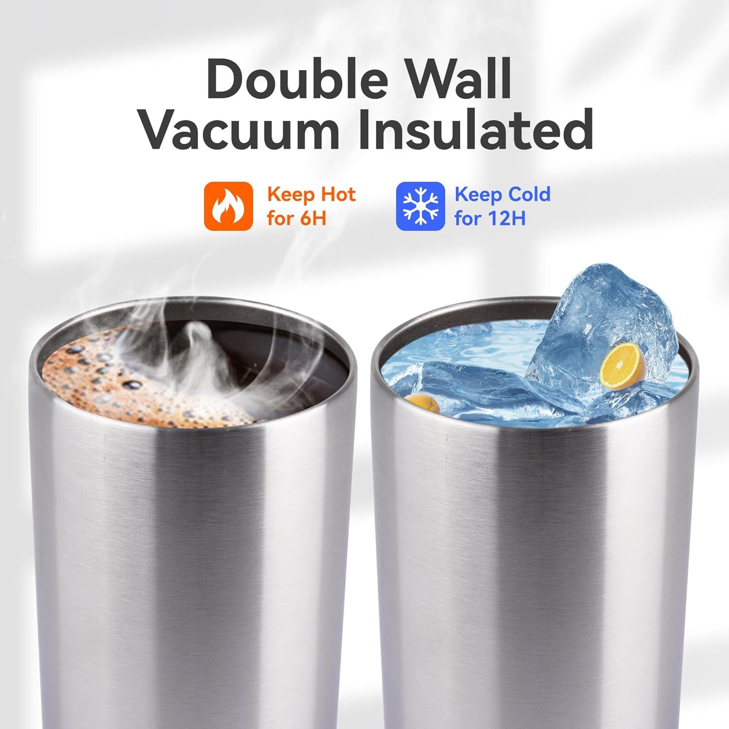 - Dual Vacuum Insulation: This skinny tumbler can keep ice cubes from melting for 12 hours and coffee hot for 6 hours—by blocking 99% of heat transfer through a vacuum insulation layer, while preventing external condensation.