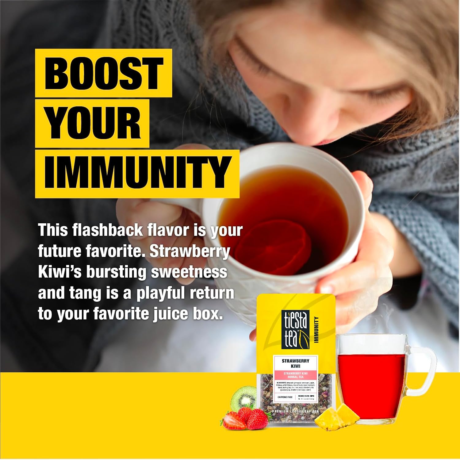 - NOSTALGIC STRAWBERRY KIWI FLAVOR EXPERIENCE: Indulge in the perfect blend of sweet strawberry and tangy kiwi in every sip. This refreshing tea captures the best fruity flavors, evoking memories of carefree days. Whether you're craving a fun pick-me-up or a moment of relaxation, the delightful balance of sweetness and tang makes each cup a joy to enjoy.