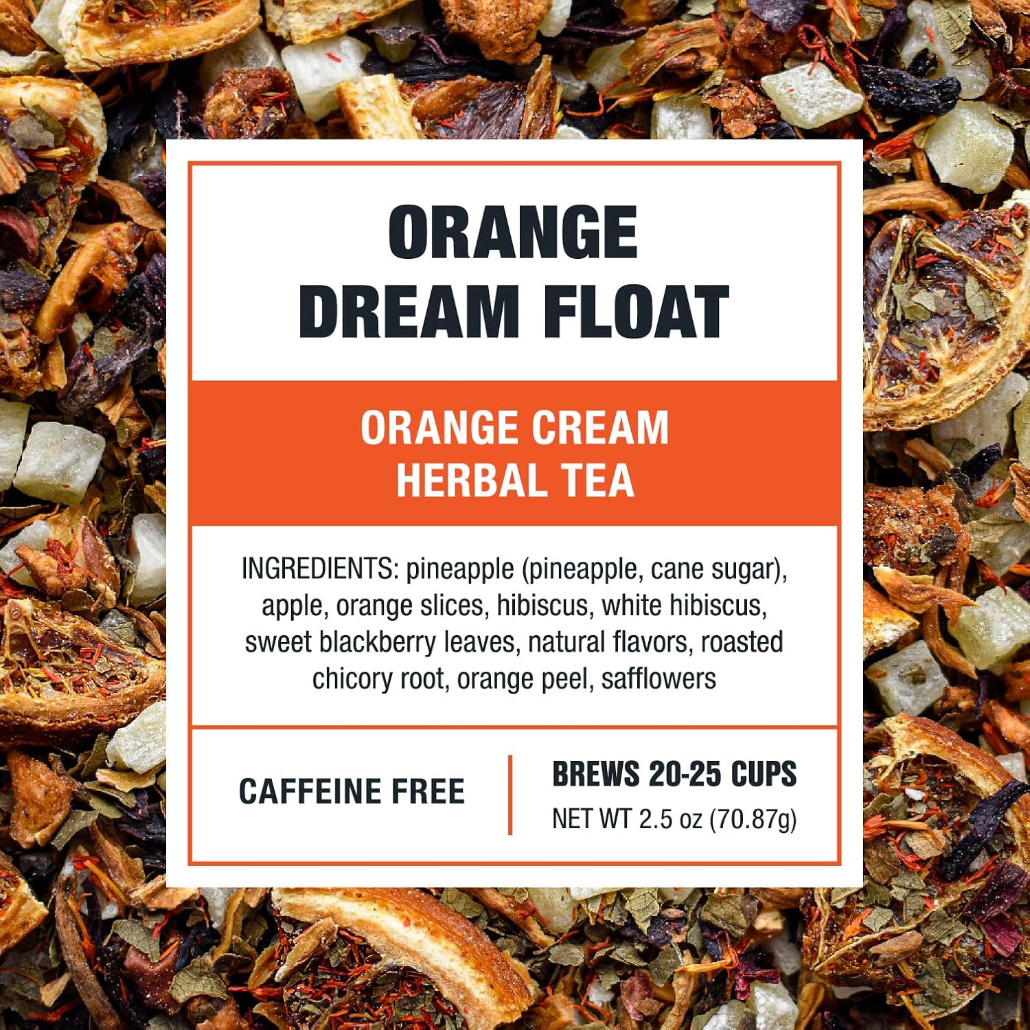 - CAFFEINE-FREE AND REFRESHING ANYTIME: Enjoy the sweet and tangy goodness of Orange Dream Float without the jitters! This herbal tea is caffeine-free, making it the perfect tea leaves to brew for any time of the day. Whether you need a morning pick-me-up or a soothing evening drink, this citrusy blend will keep you refreshed and energized.