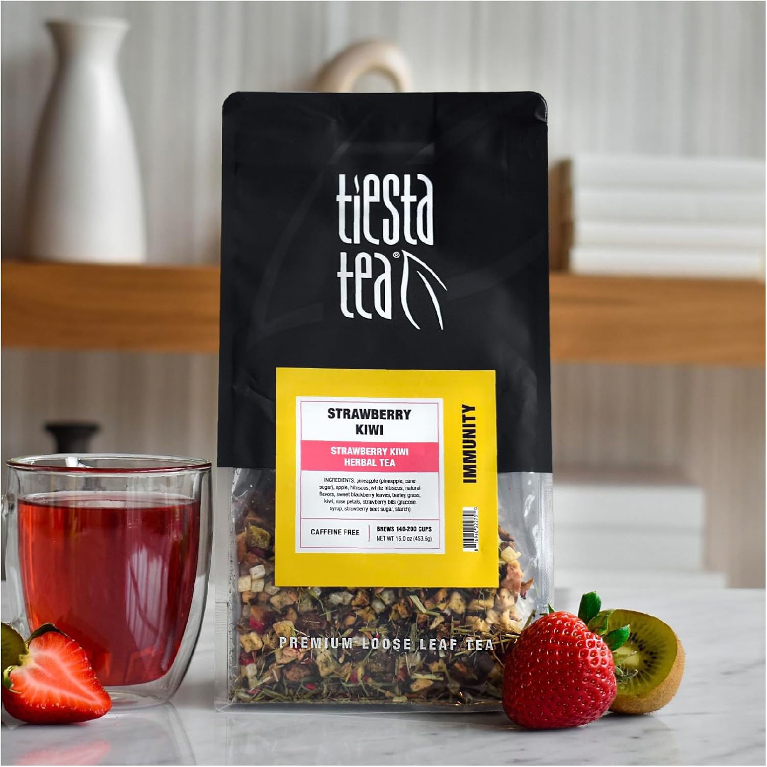 Tiesta Tea - Strawberry Kiwi Herbal Tea, Loose Leaf, Strawberry Hibiscus Kiwi Fruit Tea, Premium Caffeine-Free Herbal Blend, Make Hot or Iced & Up to 200 Cups, 16 oz Resealable Bulk Pouch
