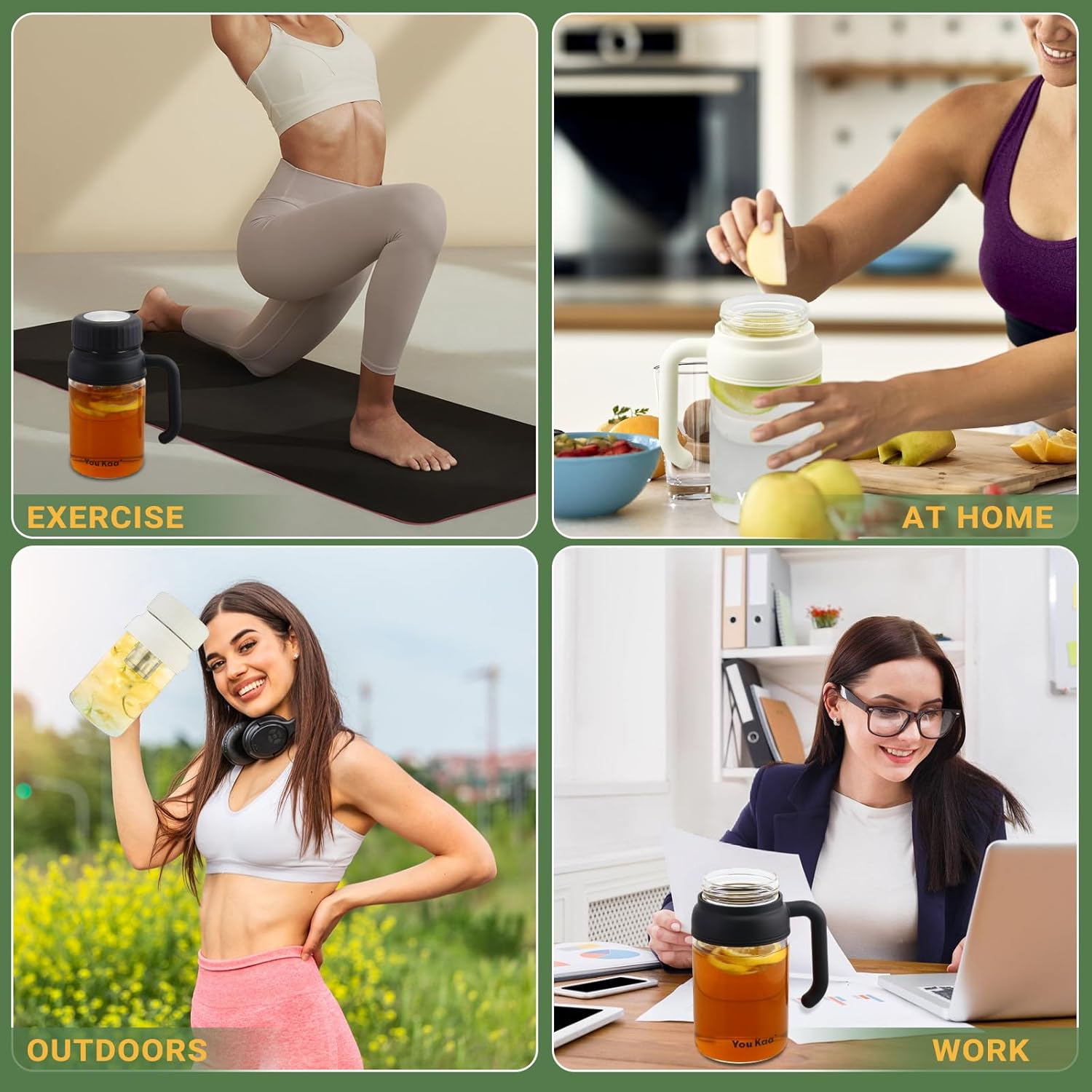 - 【High - Quality Glass Material】:Tea infuser bottle crafted from high - borosilicate glass, it withstands extreme temperatures without cracking. Enjoy hot tea or icy cold drinks, and the clear glass lets you admire your drink’s color and ingredients.