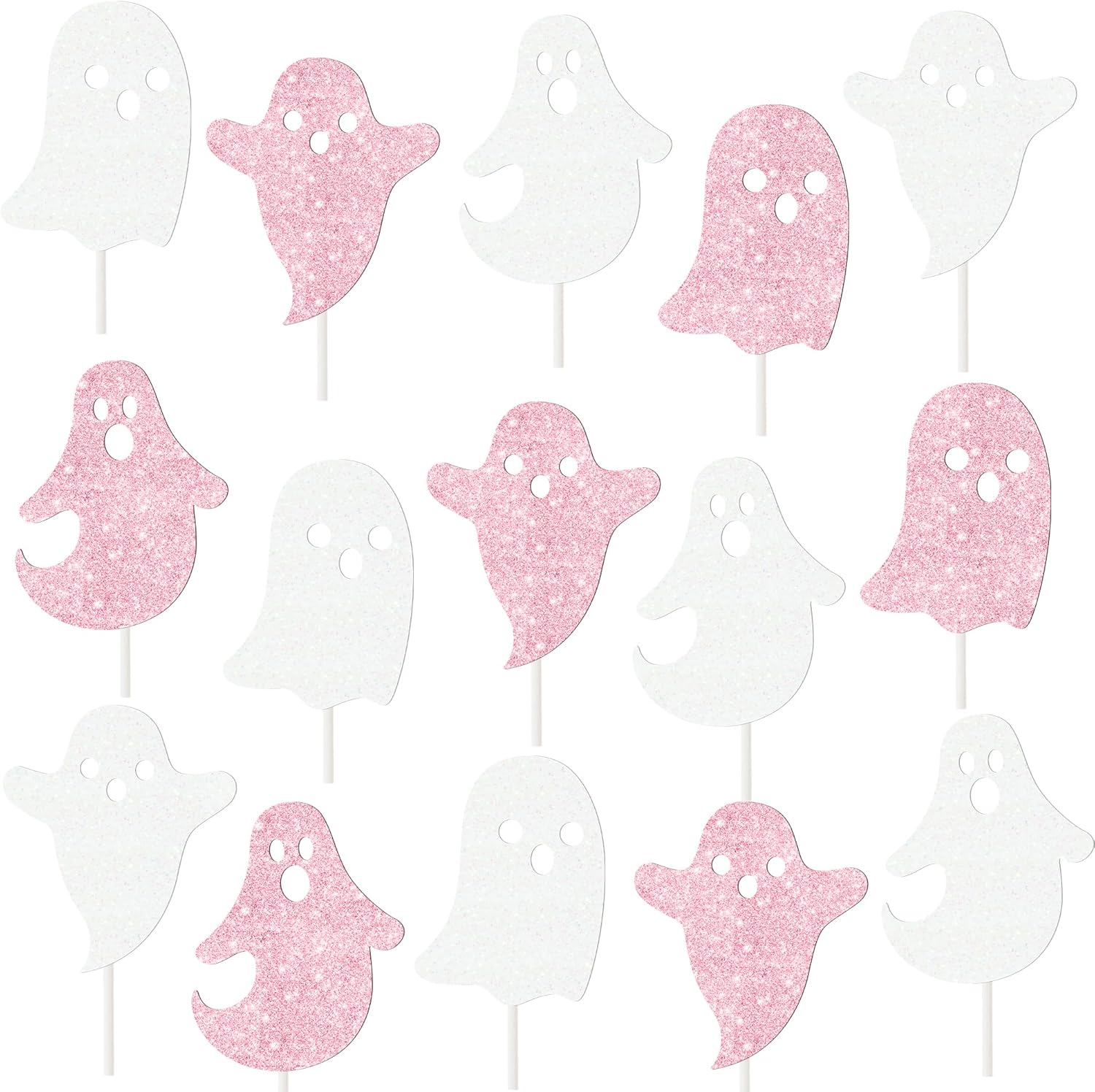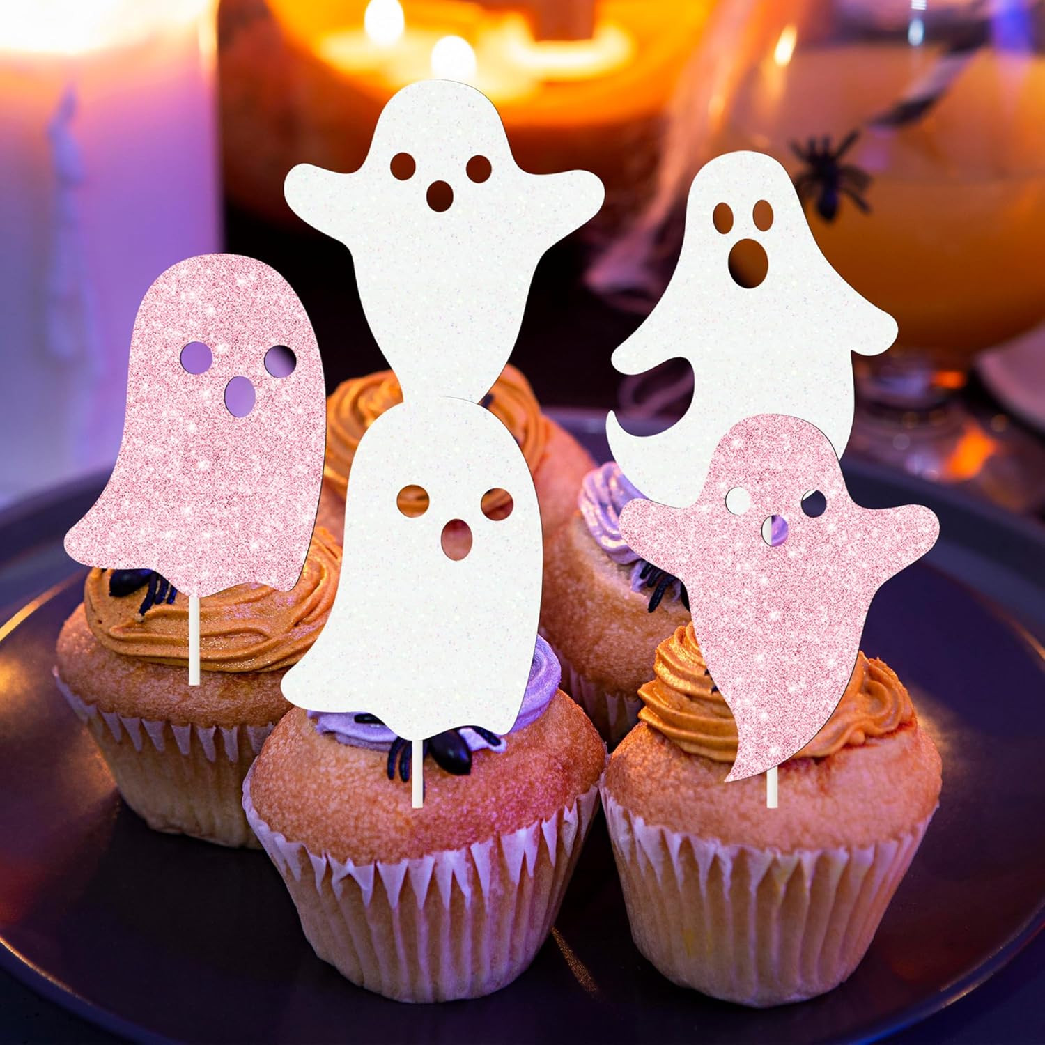 - PREMIUM DESIGN: Double-sided glitter ghost cupcake toppers in white and pink colors create an enchanting sparkle effect for your Halloween or party treats