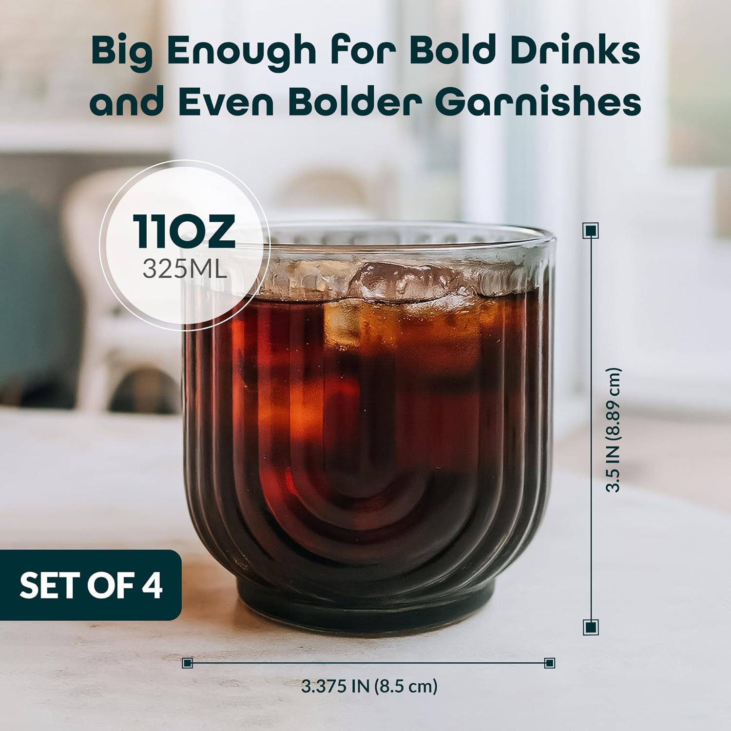 - Material Glass : Capacity 11 Fluid Ounces