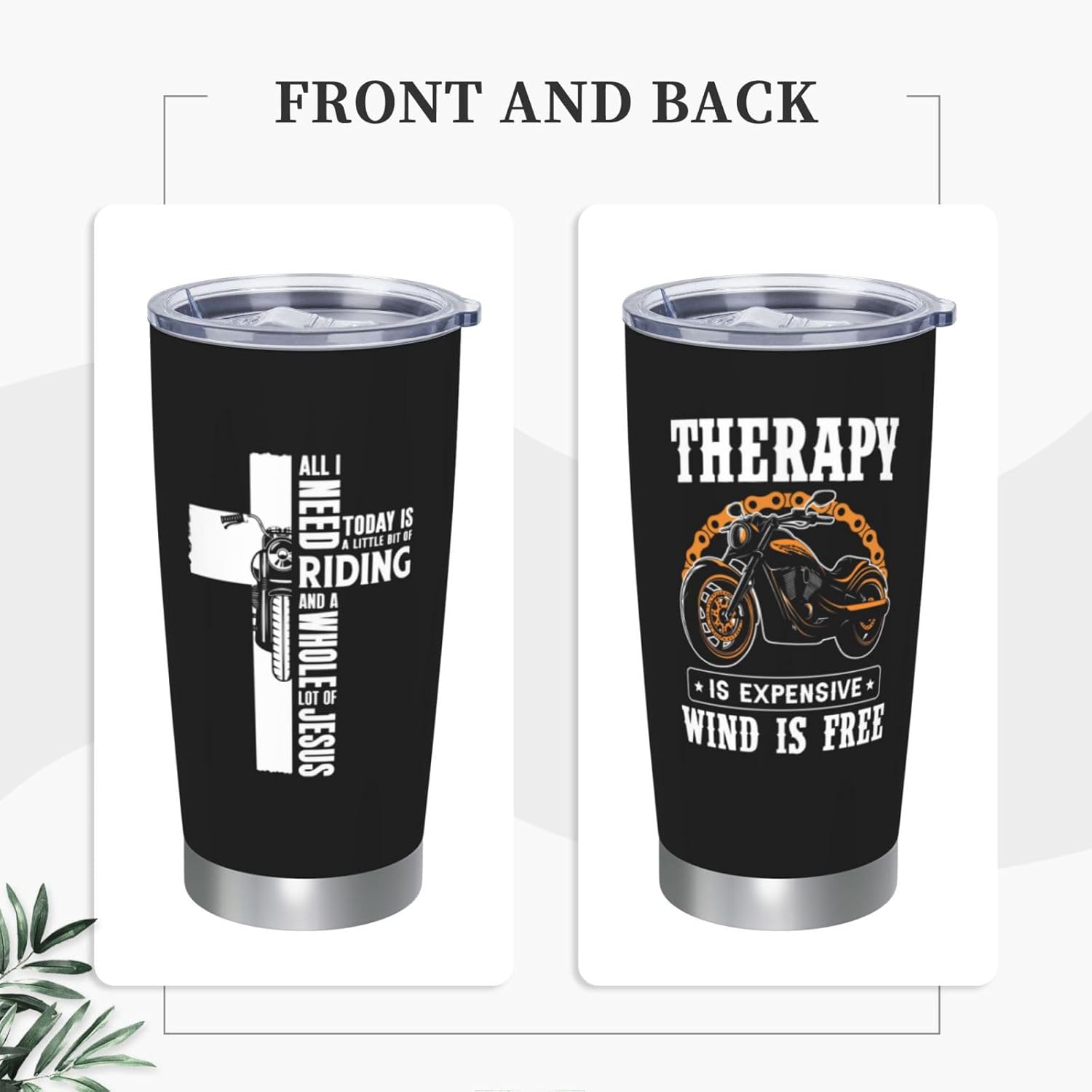 Therapy Is Expensive Wind Is Free Stainless Steel Tumbler 20 oz, Motorcycle Gifts for Men Travel Mug Cups, Birthday Gift for Motorcycle Lovers, Dad, Grandpa, Boyfriend