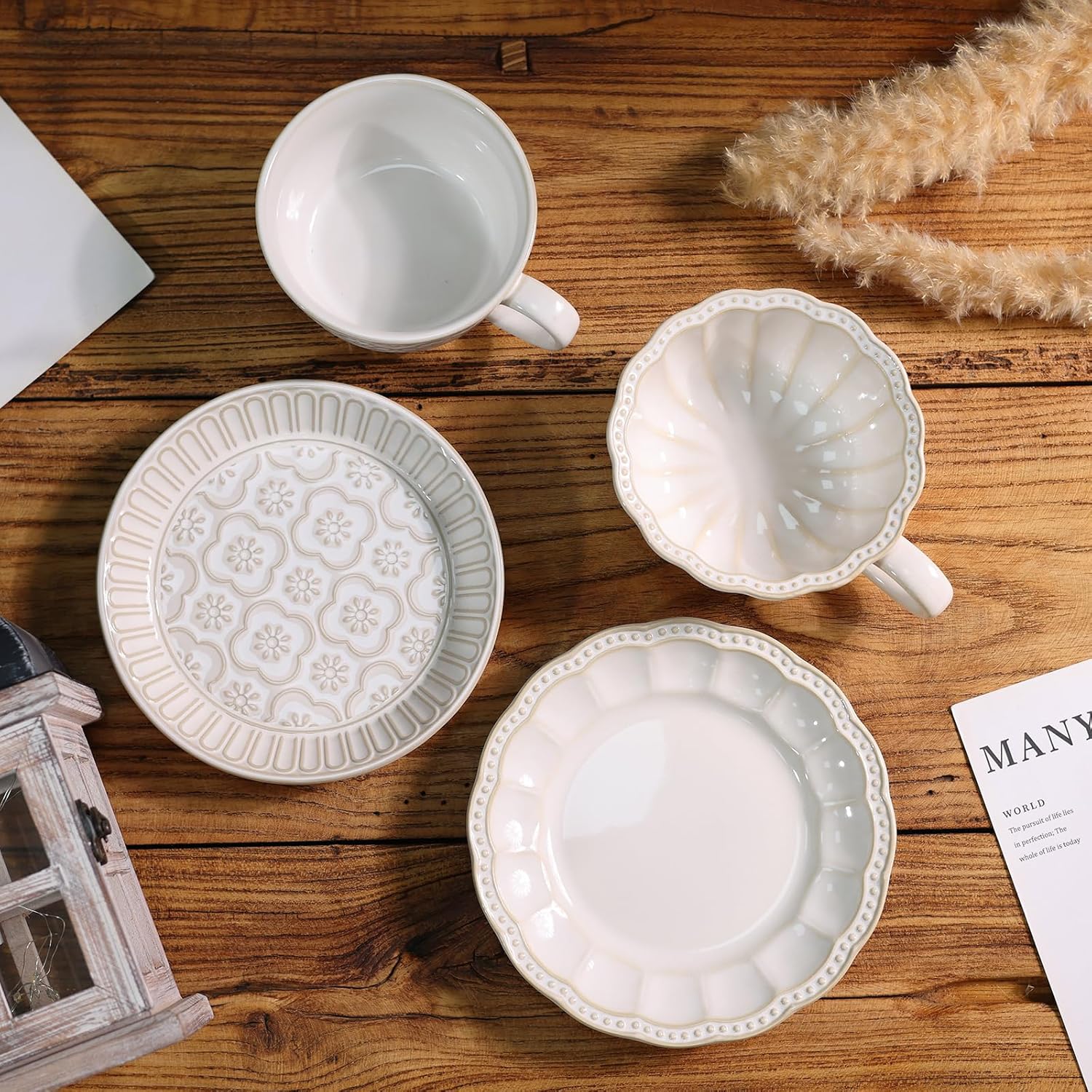 Latte Cup with Saucer, 12 OZ Cappuccino Cup Vintage Cafe Art Cups for Espresso Turkish Coffee, Farmhouse Latte Mugs Tea Cups and Saucers Porcelain Set for Baristas Great Gift