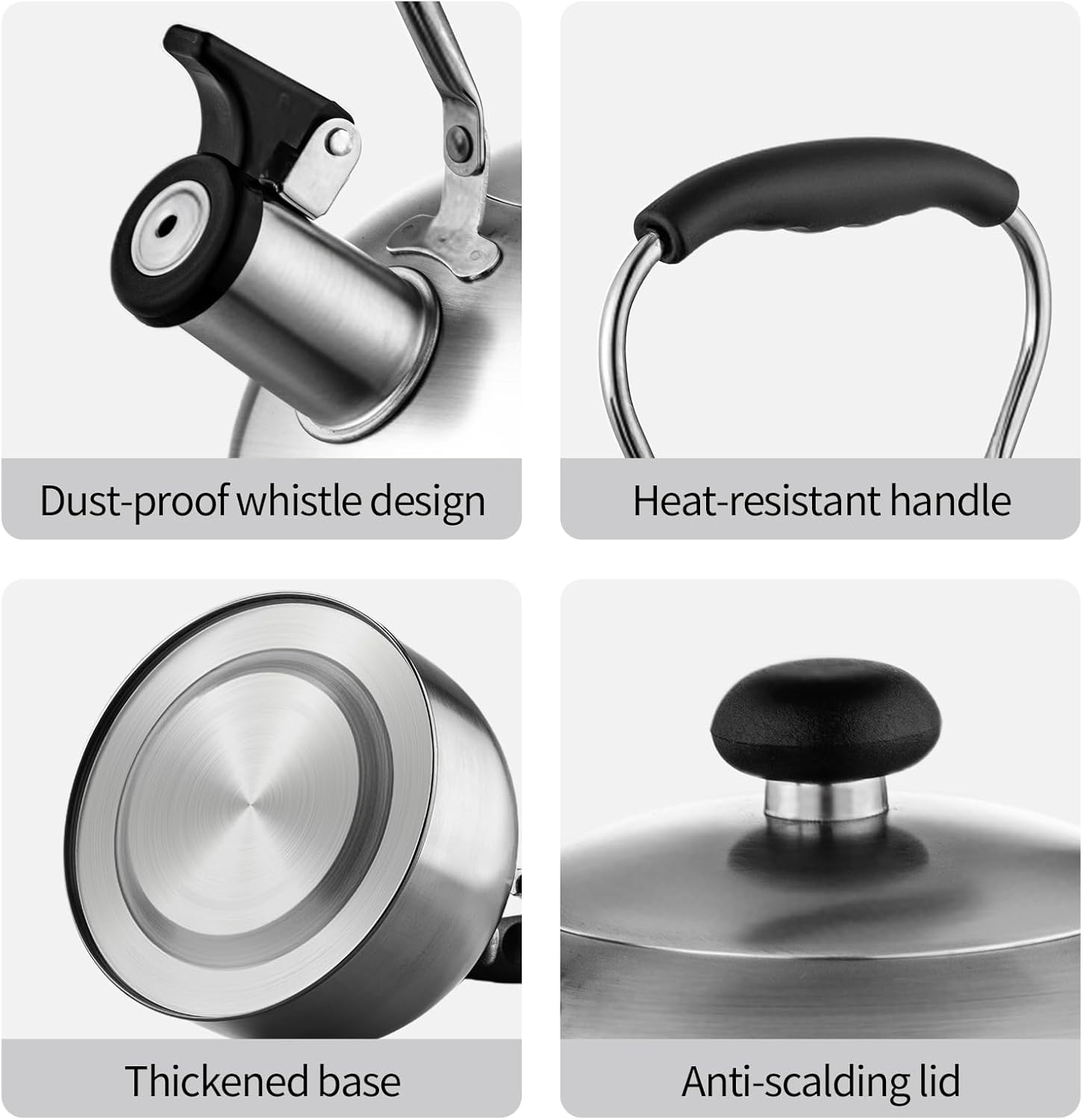 - Multi-Stove Compatibility: Designed for versatility, this stovetop teapot works on gas, electric, and induction stoves, as well as camping cookware setups, providing fast and efficient boiling anytime.