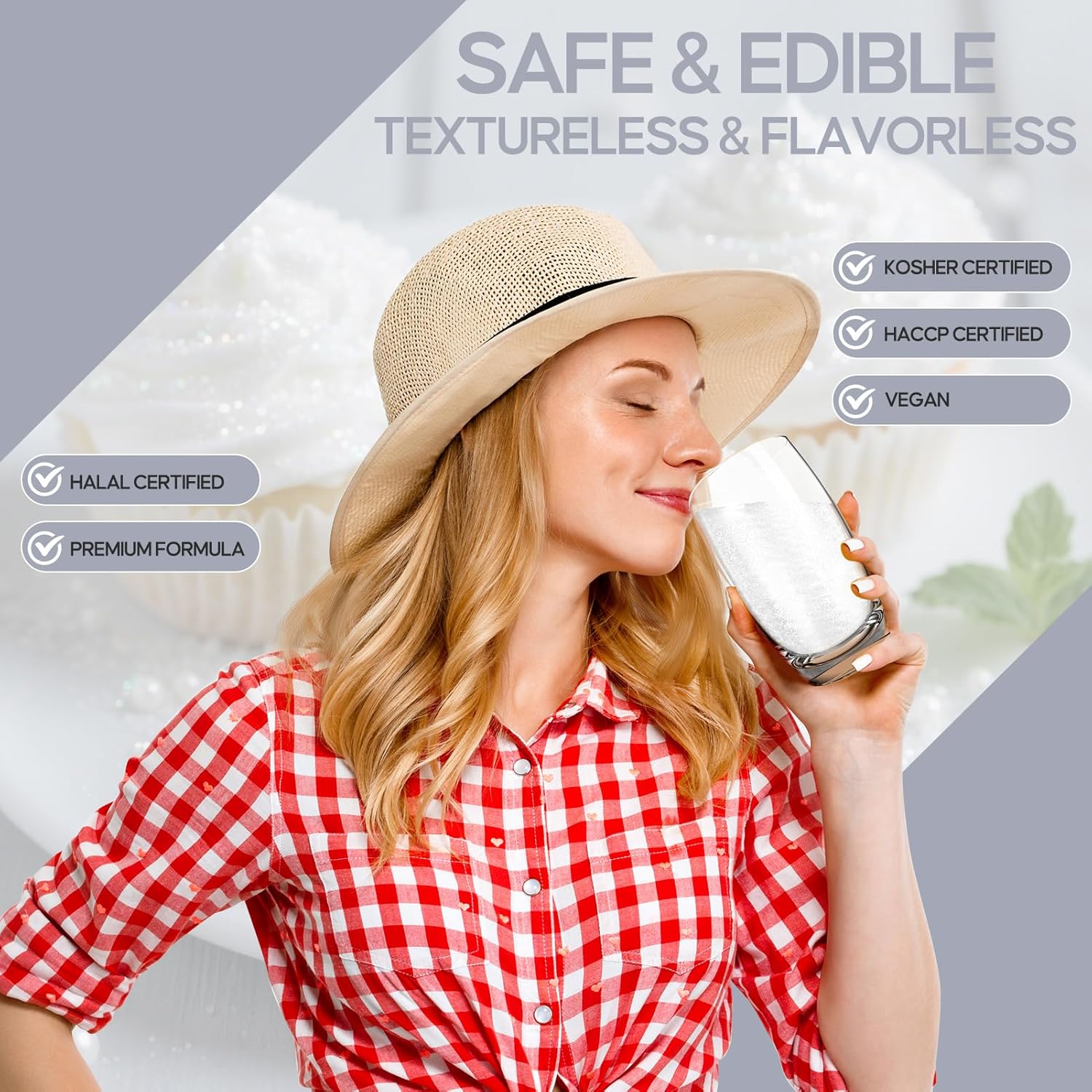 - Food-Safe & Allergen-Free Sparkle - Crafted with certified food-grade ingredients. Gluten-Free, Nut-Free, Dairy-Free & Vegan Friendly. Enjoy tasteless, odorless sparkle that won't alter your food or drink's flavor or texture. Decorate with confidence!