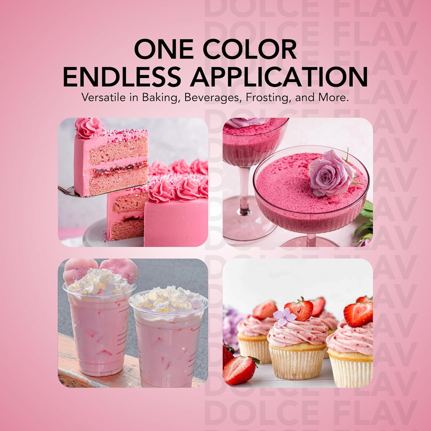 - 🎂 Versatile for Baking & Beverages (Use Rate: 0.5–1%) Highly pigmented and ideal for cakes, cupcakes, glazes, whipped toppings, smoothies, lemonades, and more. A little goes a long way.