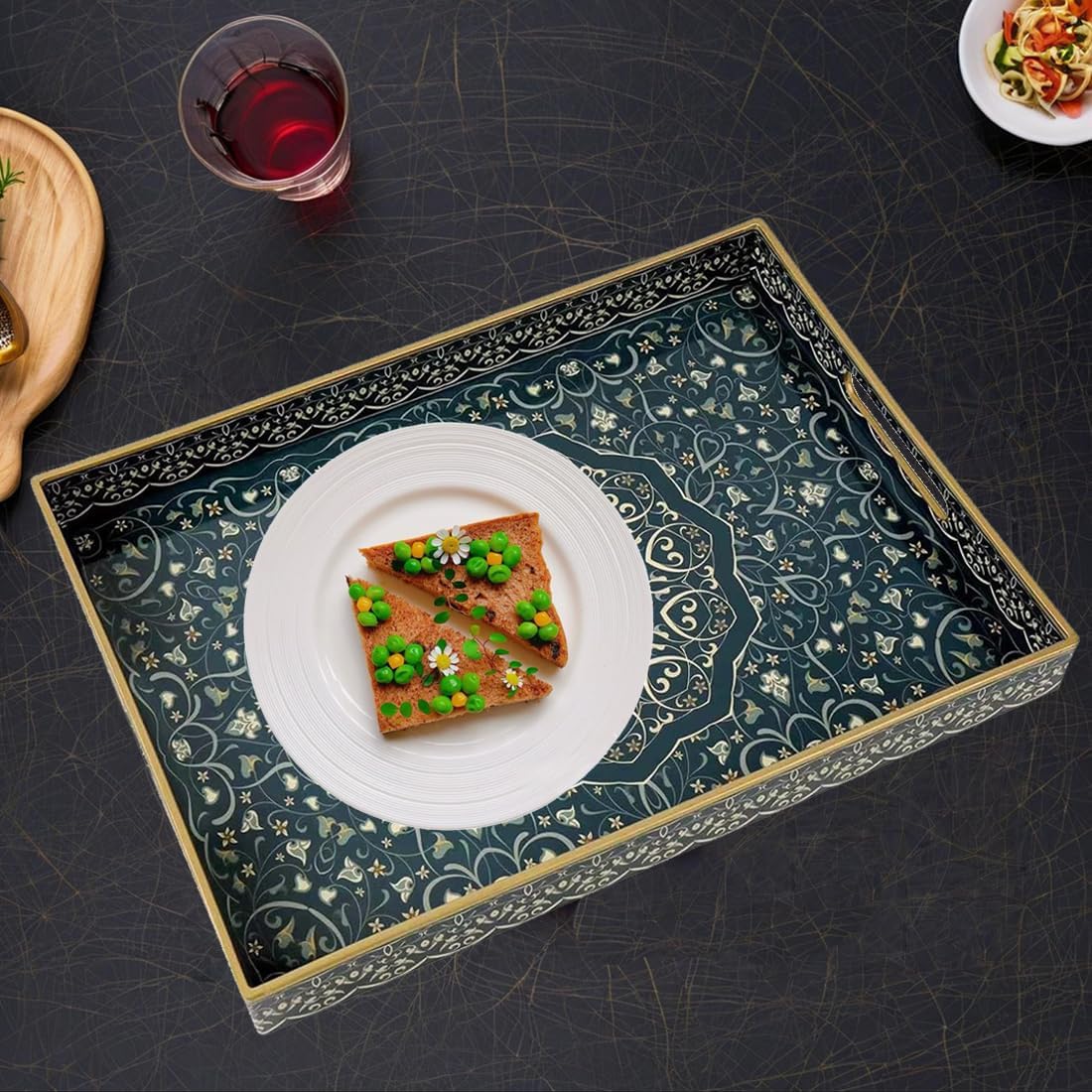 - Easy-Carry Rectangle Tray:Built-in handles + raised edges (anti-spill); Sleek look with clear patterns.