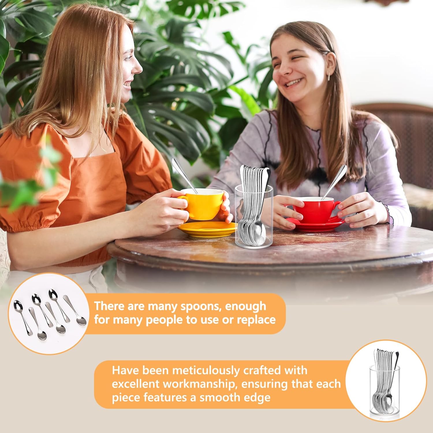 - 5.Multi-purpose Use: Stainless Steel Coffee Spoons with Holder are not only perfect for stirring your favorite beverages but also add a touch of elegance to any party, coffee gathering, kitchen, or dining experience. Mini coffee spoon with acrylic cylinder holder are versatile enough to be used in a variety of settings, making them an ideal choice for family reunions, festive celebrations, and party banquets.