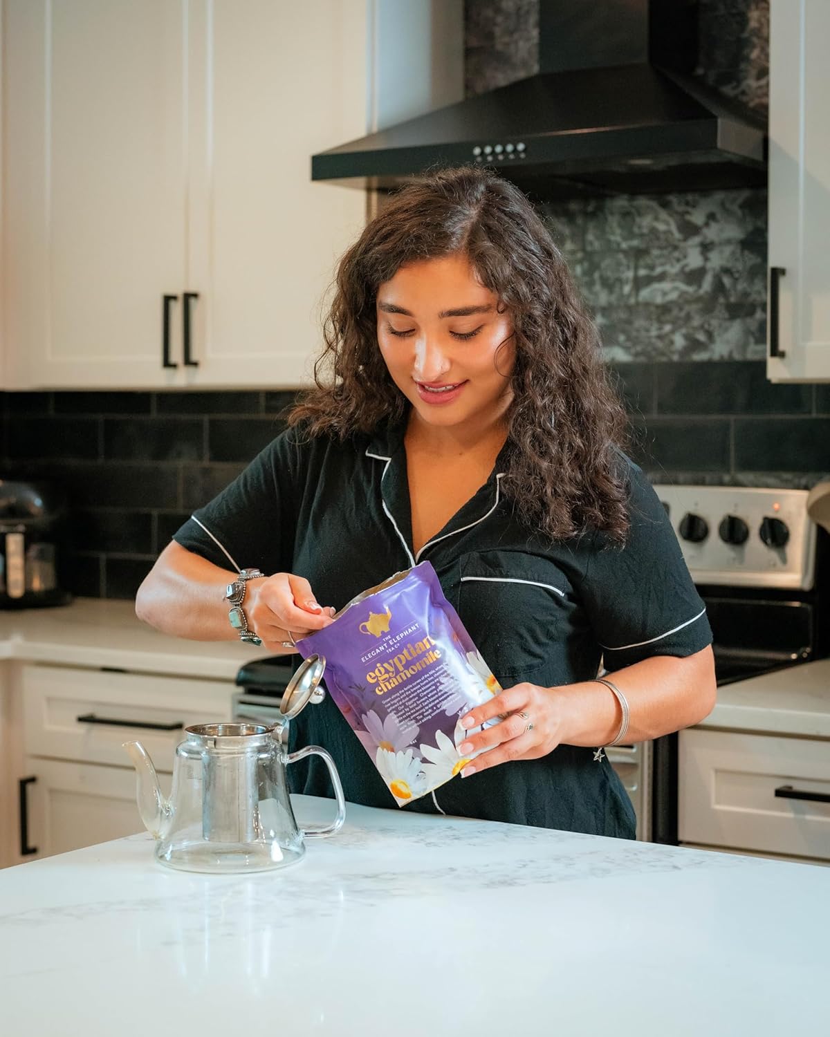 Egyptian Chamomile Tea, Organic Loose Leaf Herbal Tea – Cozy, Calming – Supports Stress Relief, Relaxation & Sleep – 4 oz Resealable Bag (Makes 50 Cups) – The Elegant Elephant