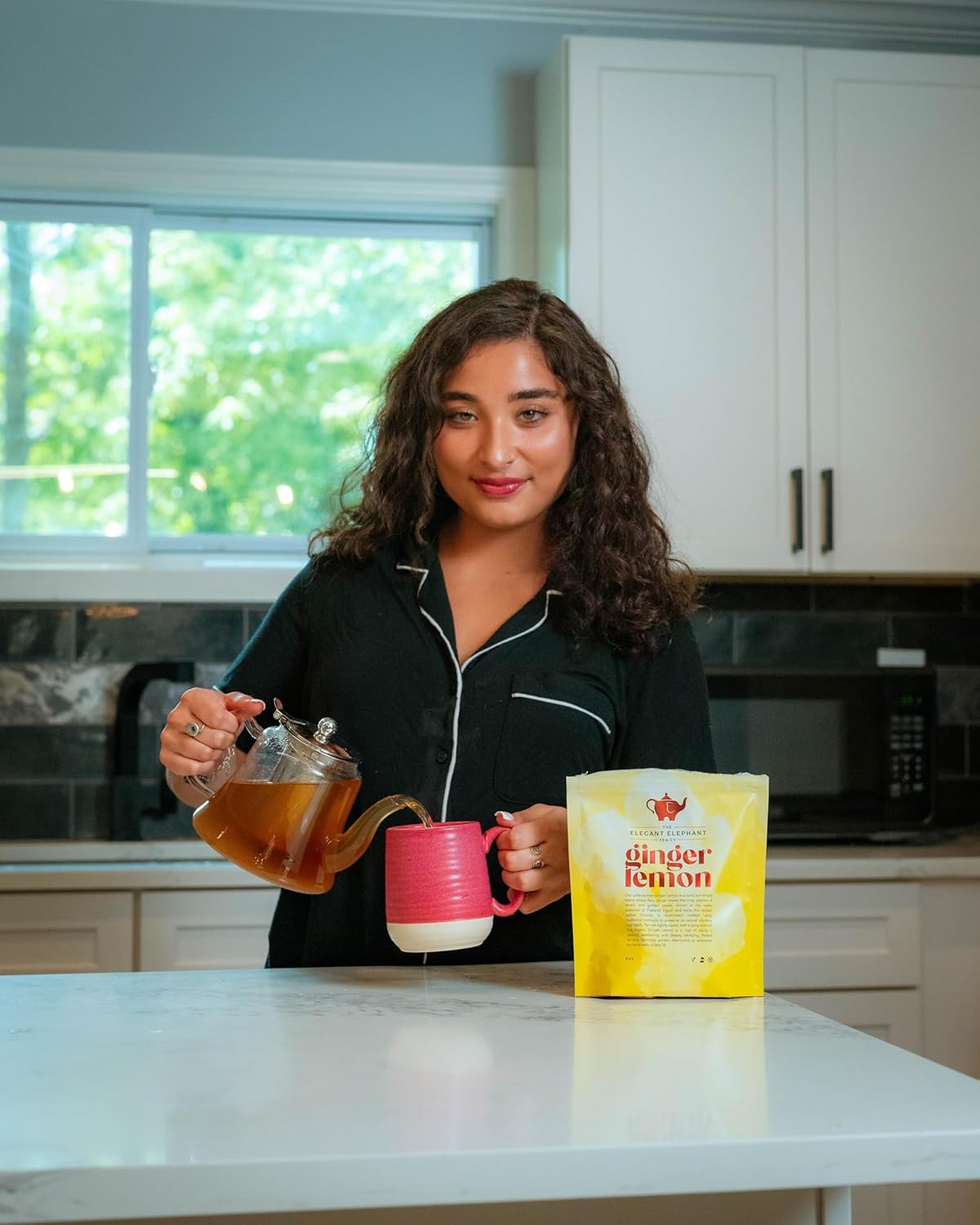 Ginger Lemon Tea, Loose Leaf Herbal Tea – Helps Reduce Nausea and Motion Sickness – Detox & Immunity Support – Drink Hot or Iced – 4 oz Resealable Bag (Makes 50 Cups) – The Elegant Elephant