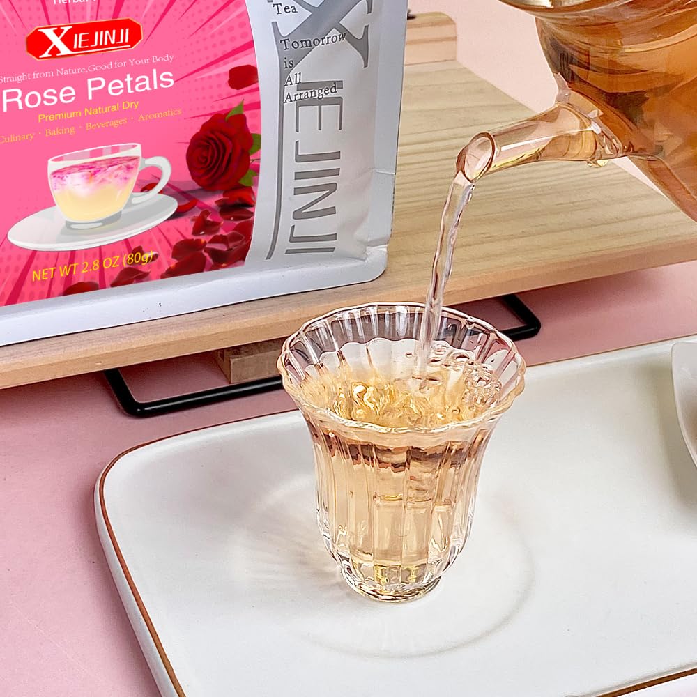 XIEJINJI Dried Rose Petals - 2.8oz/80g, Food-Grade Edible Rose Petals, Dried Flower Petals for Herbal Tea, Decoration, Baking, Crafting