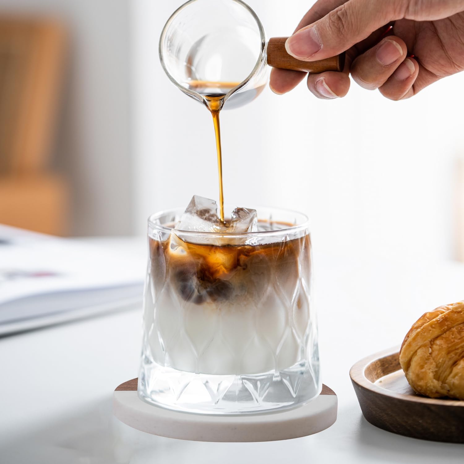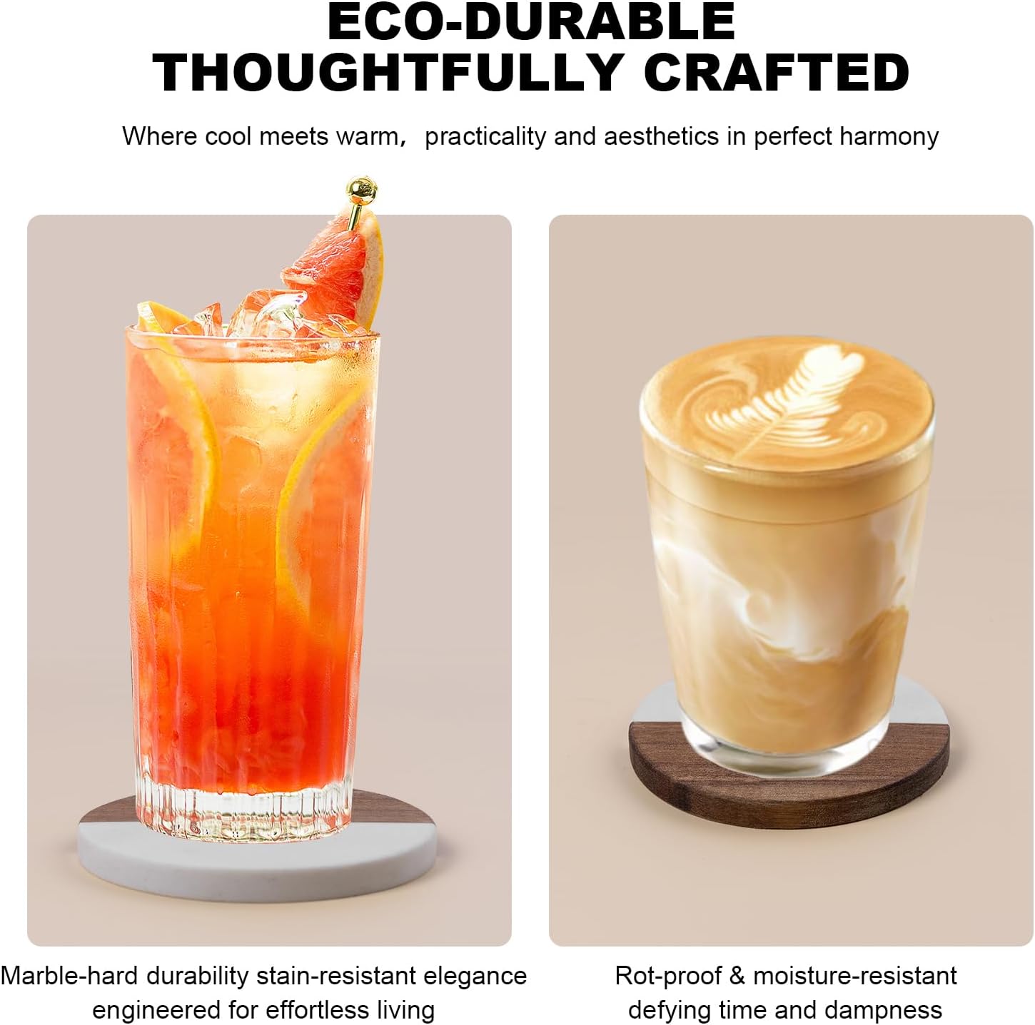 - Coaster material: Made of marble and natural acacia wood, with unique natural patterns, featuring a modern and elegant design.