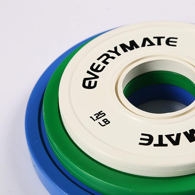 - RUBBER COATED PLATE: EVERYMATE change plates are made of steel core which can add stability to bumper weight plates. We select high-quality rubber as a coating to create stronger and more durable plates. Bumper fractional change plates are easier to handle than traditional iron plates. The high-quality rubber of the plate prevents your floor from scratching. Corrosion-resistant, no peculiar smell. Don't worry about the smell of rubber in the fitness area at home.