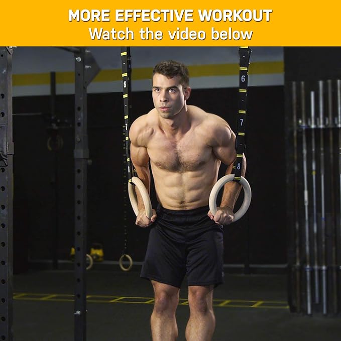 - [ Your Free Bonus ] We want to help you get your dream body quickly, so with every set of straps we give you an amazing online exercise videos guide FREE! This unique guide is packed with incredible exercises using our gymnastic ring straps for your upper body so you can get the muscular body you desire. Simply follow the printed instructions found inside the product box, to access the web-based exercises page.