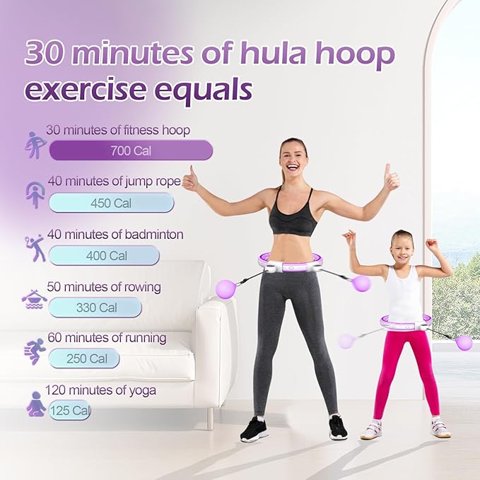 - ✅【Low-noise Weight Loss Hula Hoop】:With a noise level of approximately 40dB, this hula hoop won’t disturb you or others while in use. Whether you’re exercising while watching TV or focusing on weight loss, it operates quietly without causing any distraction.