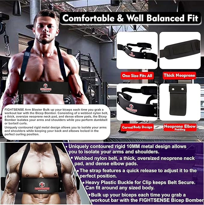 • ✅TARGET AND ISOLATE BICEP MUSCLES: Our Arm Blaster for biceps is the ideal tool for weight lifting and body building. The blaster body supports your elbows, enabling you to keep correct posture during curls and triceps exercises. When curling your biceps curl bar, users immediately notice proper bicep isolation. Our Arm Blaster muscle bomber will enhance biceps curls and allow you to build lean, big muscle. This is the biceps isolator and black color arm blaster for novice and serious trainers