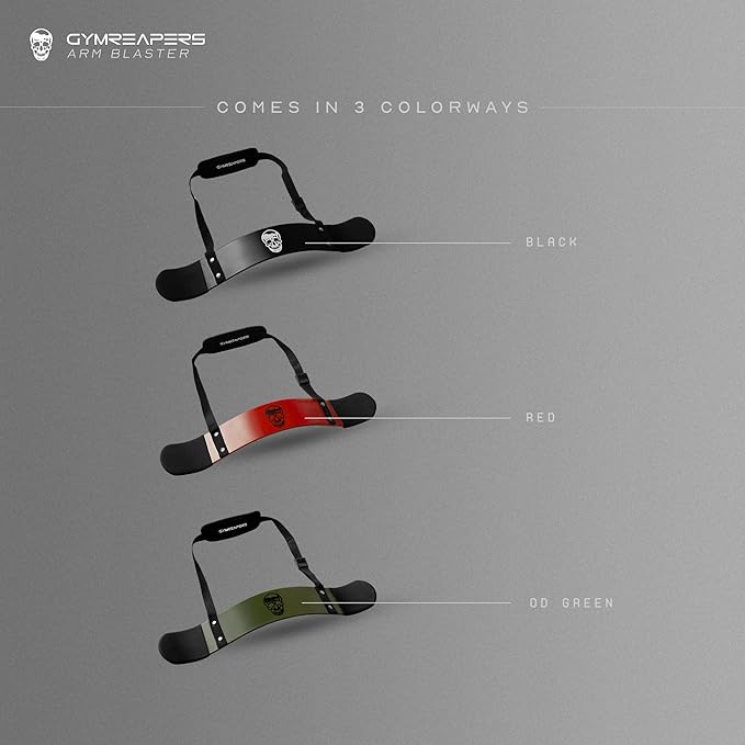 - GET BIGGERS ARMS WITH BETTER ISOLATION - Gymreapers arm blaster is the industry standard posture supporting tool for your arm workouts. The blaster supports your body by forcing you to tuck your elbows by your side, enabling proper posture while isolating your arms when weightlifting and bodybuilding. With our trademark skull logo and all black color our arm blaster is a must have in your training arsenal.