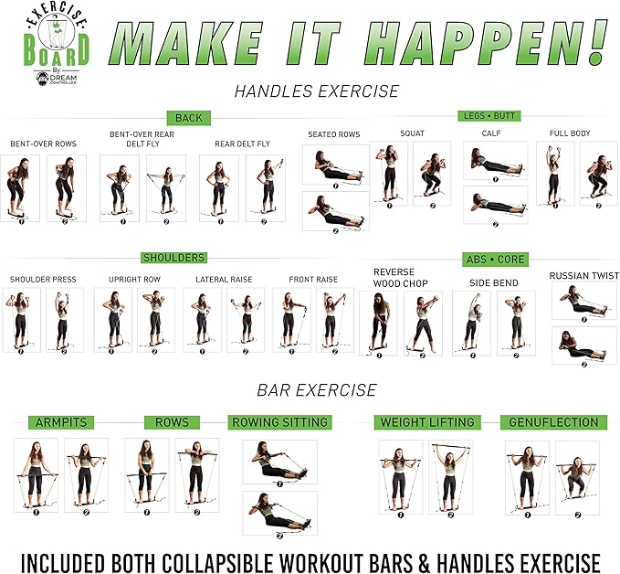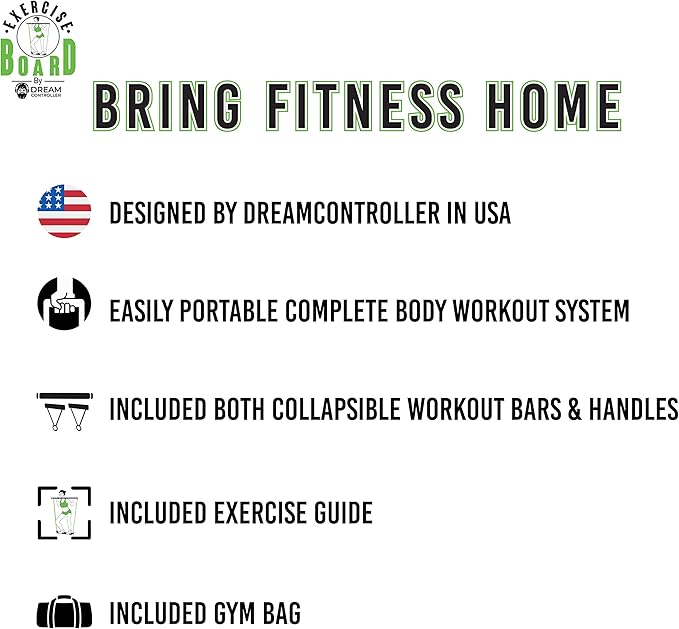 - Included Components : Exercise Board, Collapsible Exercise Toning Bar, Resistance band, Handles, Carry Bag