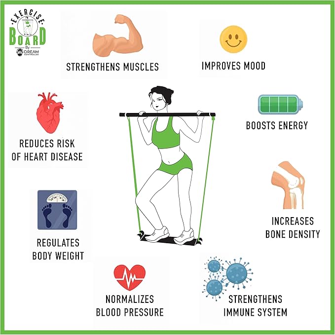- 🏋️♀️ Amazon Assured: Gym accessories for home gym contains -1 Exercise Board, 1 Collapsible Exercise Toning Bar, 1 Resistance band (GREEN: 25 lbs) having 10 different resistance adjustment levels, Exercise Manual, Gym Bag. We ensure that all these products, including this balancing board, passes our strict quality assessments. However, if you have any concerns or issues regarding your gym home workout machine, please don’t hesitate to contact us via Amazon.