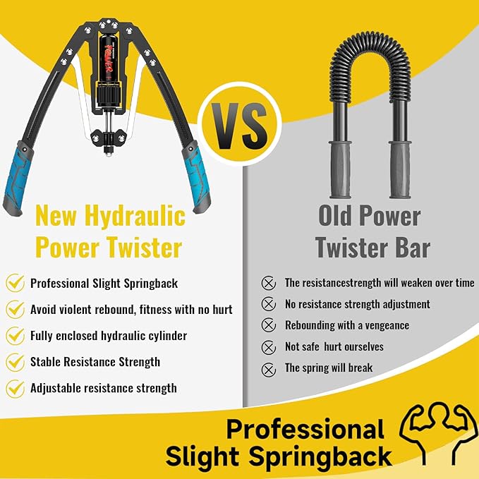 - 【Adjustable Power Twister】: An upgraded fourth-generation hydraulic arm and chest strengthener that can adjust different resistances by turning the resistance button, which is more user-friendly than traditional spring arm strength devices.we made this chest exercise adjustable from 22-440lbs with 2-20 levels. which is very suitable for those who are just beginning to use it, men, women, a novice or veteran, etc. Just easily rotate the knobs, you can choose the level which suits you the best.