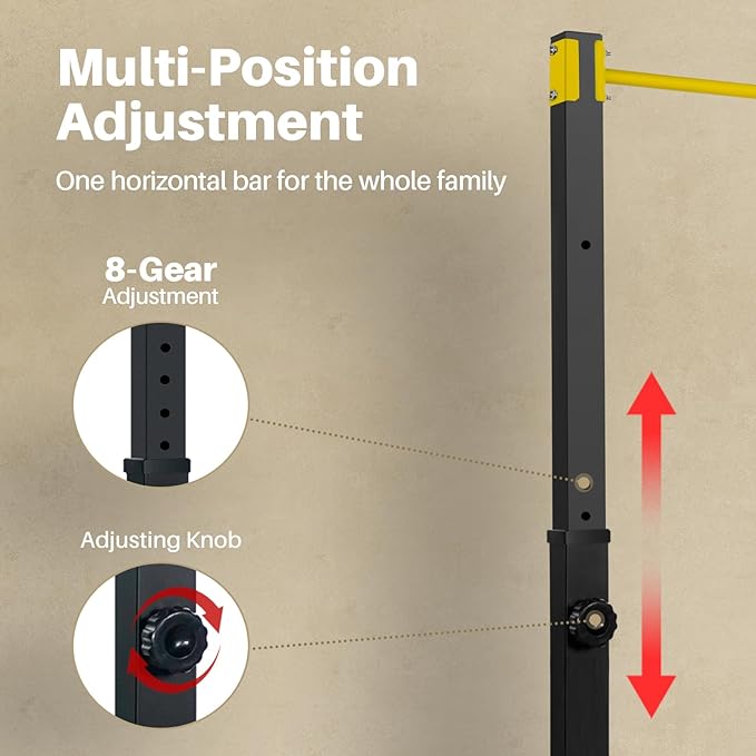 - 【8 ADJUSTABLE POSITIONS】Pull-ups have 8 levels of adjustment, with a minimum height of 59inch and a maximum height of 85inch, and a hole spacing of 1.97inch. Pull up bar station can be used by adults and children at home.