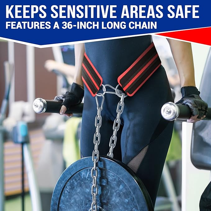 - HEAVY-DUTY DESIGN - Our dip belt for weight lifting features a 36” steel chain, allowing you to easily add weight for dips & pull-ups. Built for durability, our chain lifting belt handles your toughest workouts with ease.
