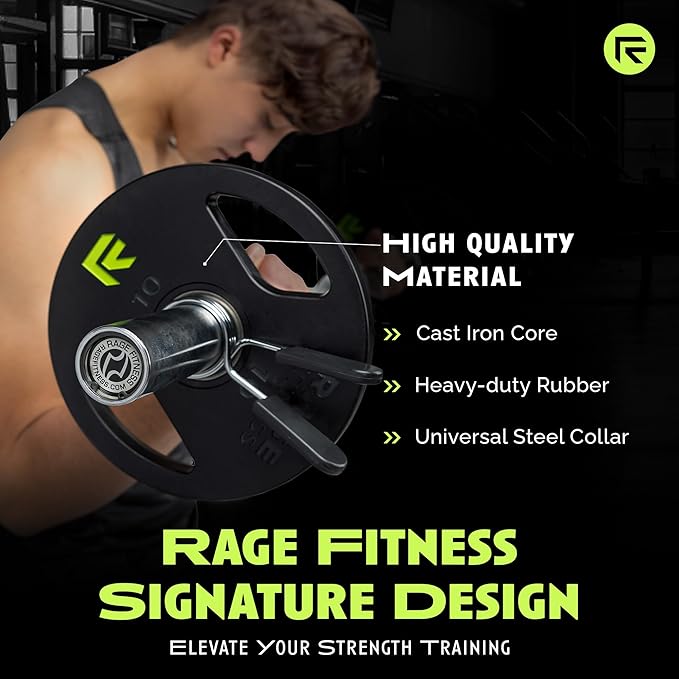 - NOISE-REDUCTION: Take your workout experience to the next level with Rage Cast Iron Weight Plates. The heavy-duty rubber construction reduces noise during lifts and drops so you can focus on your training without distractions. Ideal home gym plates.