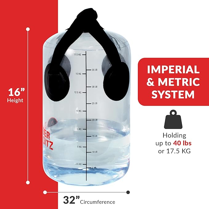 - DURABLE AND SAFE | Weights that you fill with water and add up to 40 lbs to for a dynamic training environment. To use bag weights for exercises, simply add water weight in the desired kg or lbs. The aqua weights can be changed. Wrist roller comes with a premium nylon webbing strap to increase comfort and safety while you exercise your forearms.