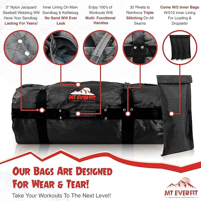 Sandbag Workout Bag & Sandbag Kettlebell Set - 1050 Cordura 8 Thick 3 Inner