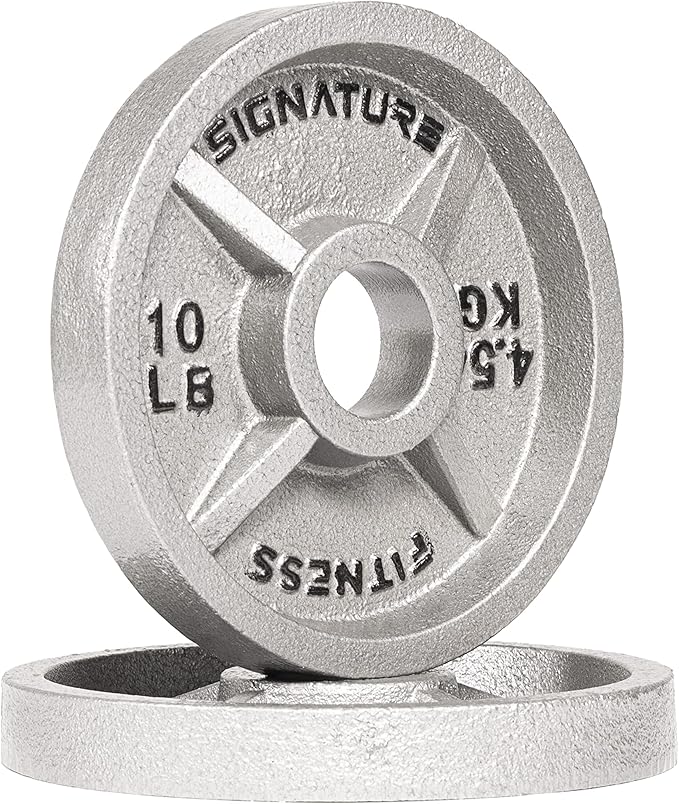 - ✅OLYMPIC STYLE PLATES – Constructed of Solid Cast Iron with a 2-inch machine drilled hole and durable Silver Enamel finish. Simple, classic, and tough enough to endure a rock-solid workout! Note: Each weight plate has a 2-inch center hole diameter that is designed to fit on standard Olympic Barbells.