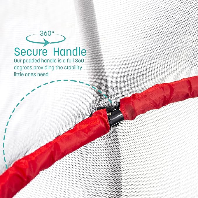 - 360-DEGREE HANDLEBAR: This mini trampoline for toddlers features a 360-degree padded handlebar that offers stability for your little jumper. The mini trampoline with net enclosure is a great small trampoline for kids.