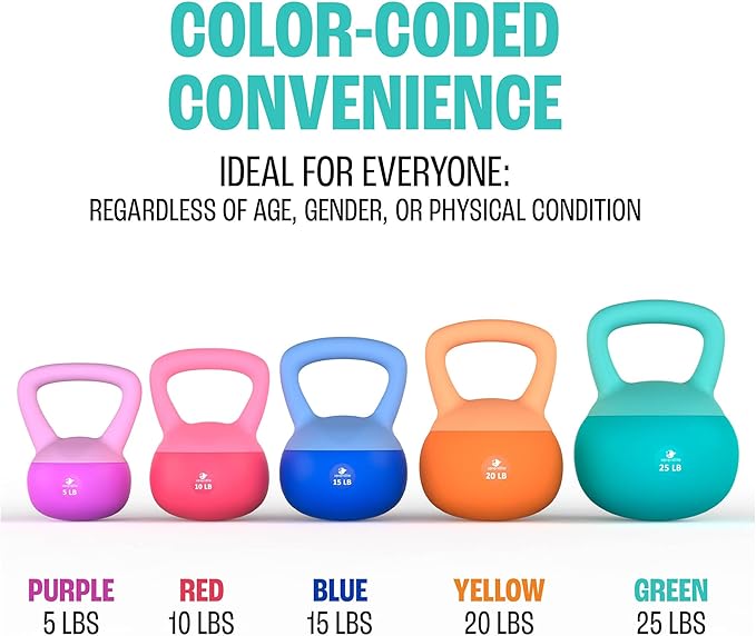 - Weight Options for Everyone: Our kettlebells set comes in a range of weights (5 lb, 10 lb, 15 lb, 20 lb, and 25 lb), making them ideal for anyone wanting to improve their fitness, regardless of age, physical condition, or gender.