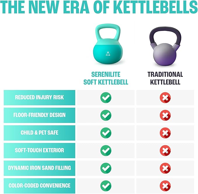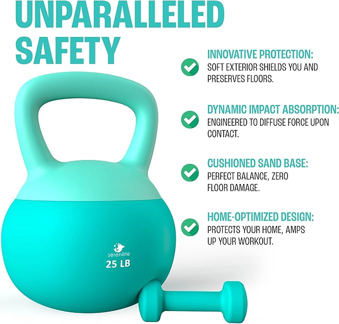 - Experience a Safe Workout: The Serenilite kettlebell set is designed with sand filling and a flexible bottom, which minimizes drop impact for injury prevention.