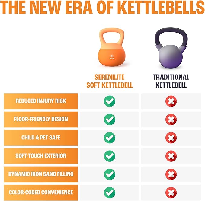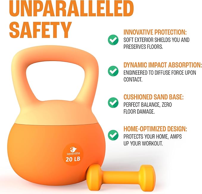 - Experience a Safe Workout: The Serenilite kettlebell set is designed with sand filling and a flexible bottom, which minimizes drop impact for injury prevention.